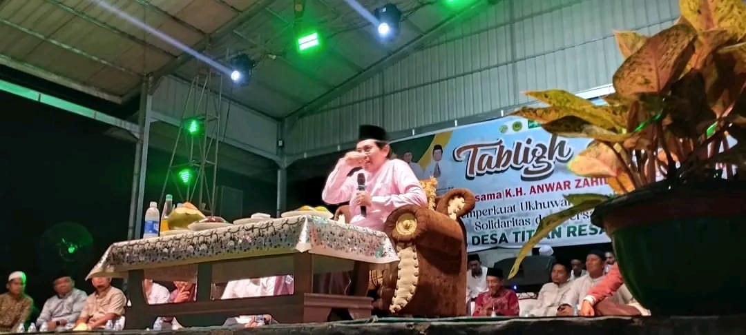 Inhu, BeritaOne.id – Lapangan Desa Titian Resak, Kecamatan Seberida, dipadati ratusan jamaah yang hadir mengikuti Tabligh Akbar bersama penceramah kondang KH Anwar Zahid, Kamis (11/12/2025).